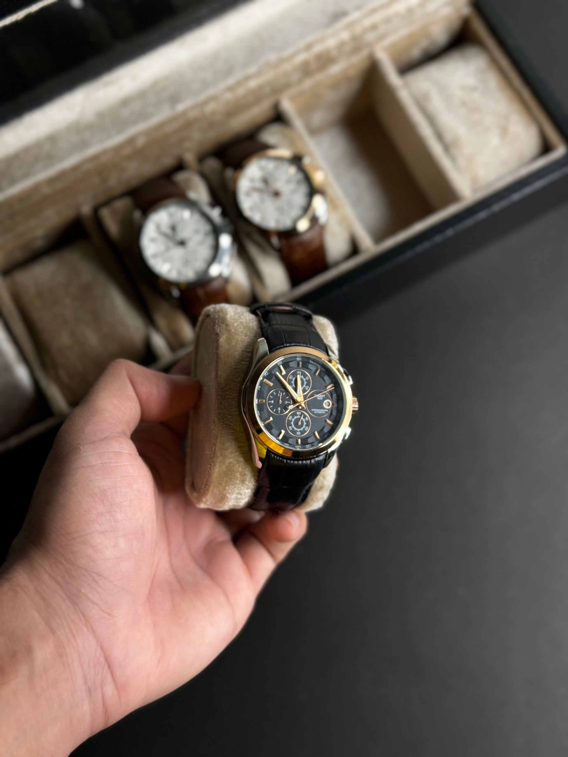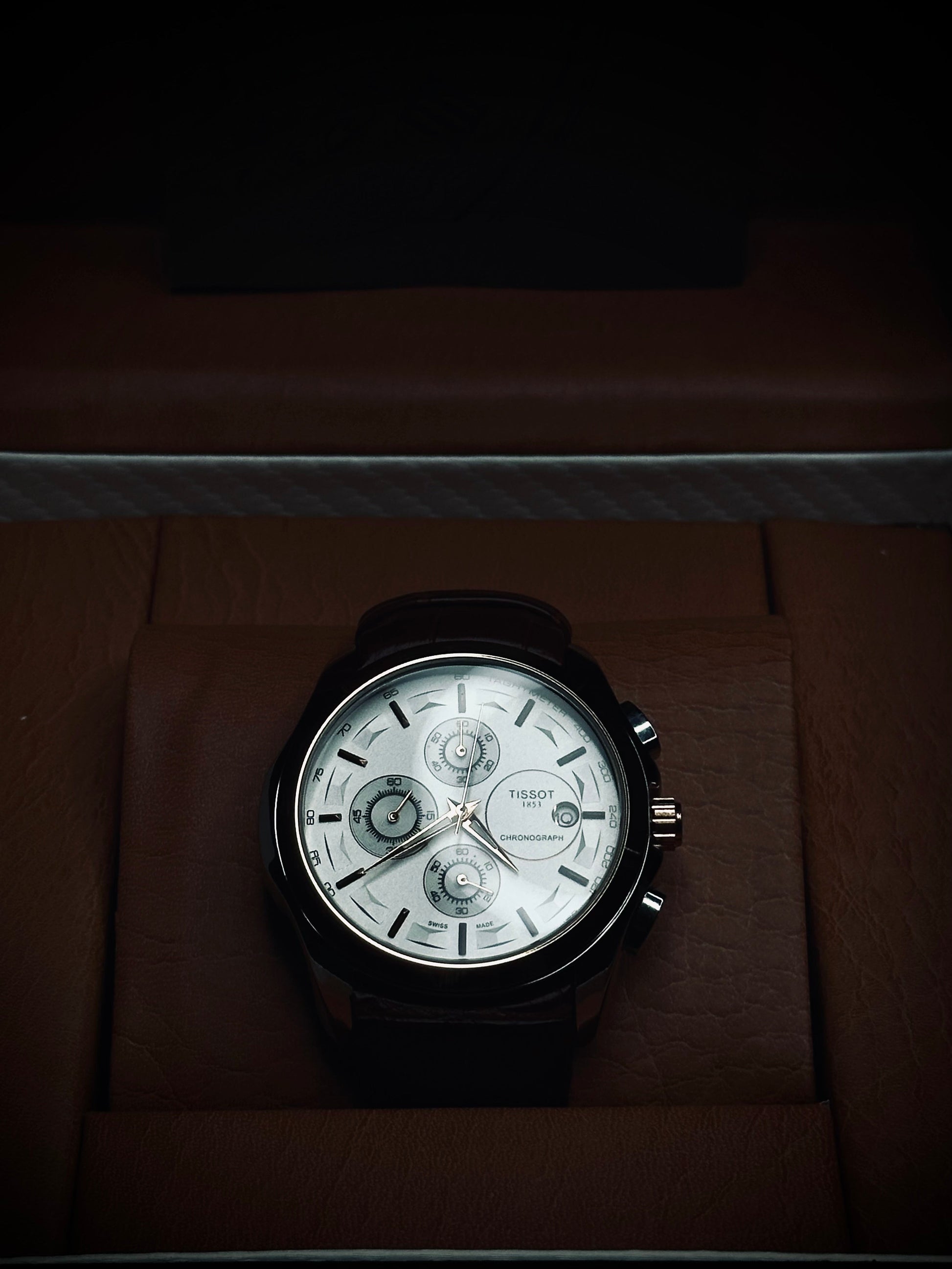 Introducing the Tissot Chronograph Watch, an epitome of elegance and precision. This exquisite timepiece features premium genuine leather straps that provide unmatched comfort and durability. All chronographs are fully functional, including a highly accurate stopwatch, ensuring you are always on time. The watch is secured with a stylish, premium lock adorned with the iconic Tissot badging, showcasing its authenticity and sophistication. Perfect for those who appreciate luxury and performance, this Tissot watch is a must-have accessory for any discerning individual.