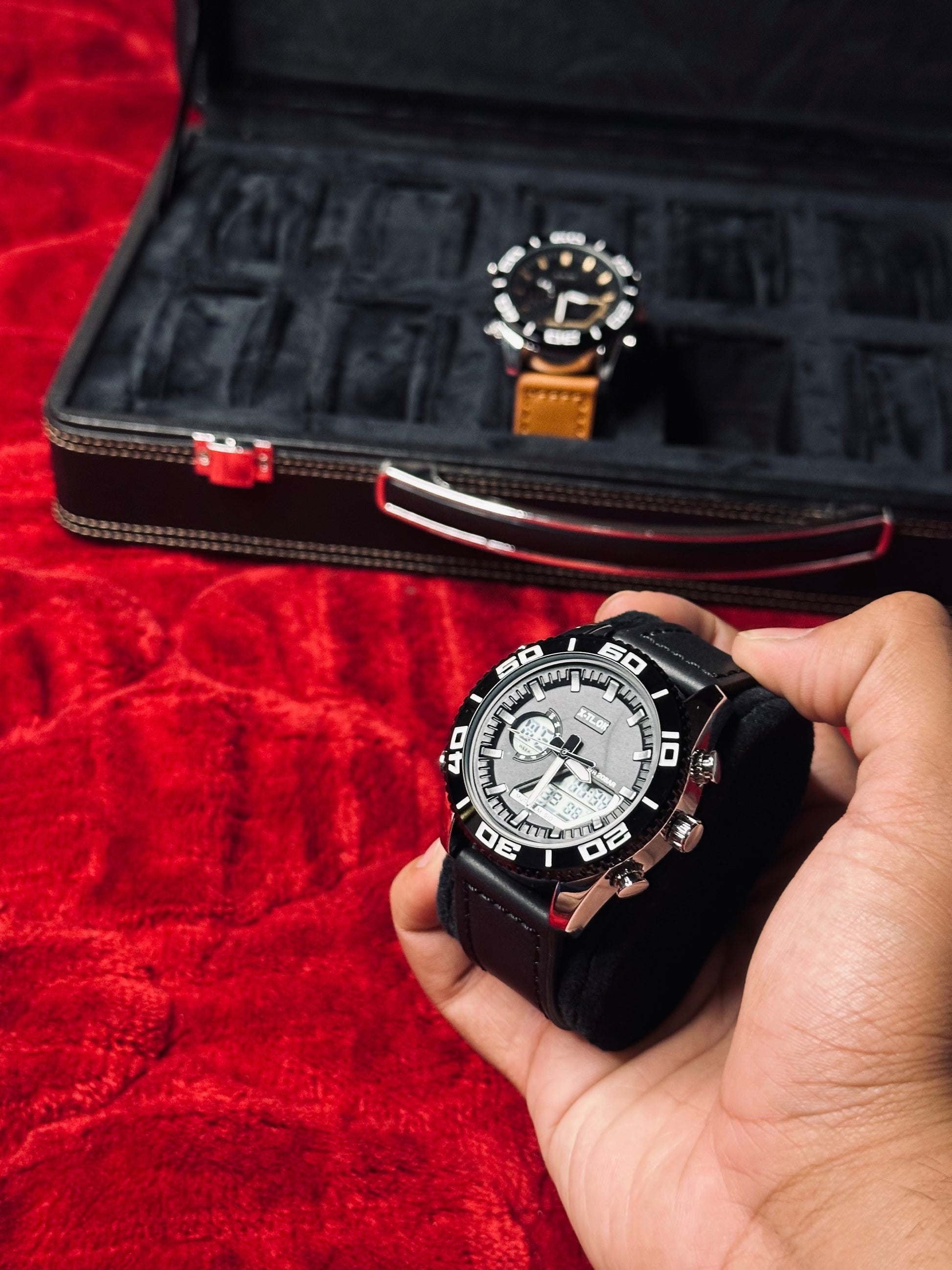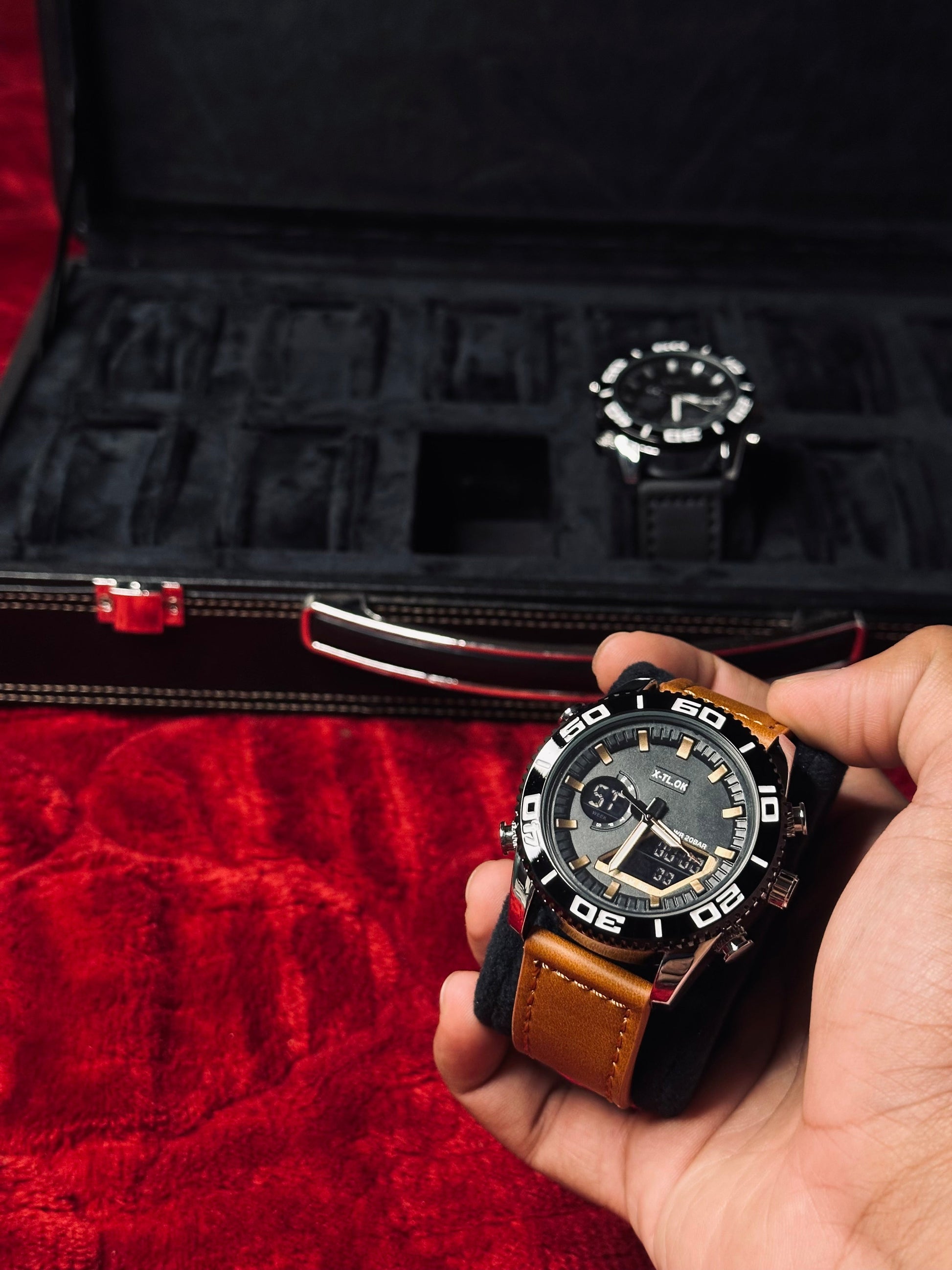 The XT-Lock watch combines the sleekness of a mechanical and digital dial with the functionality of an alarm and built-in light. This premium quality heavy weight watch is perfect for professionals who value both style and reliability. Experience the best of both worlds with XT-Lock.
